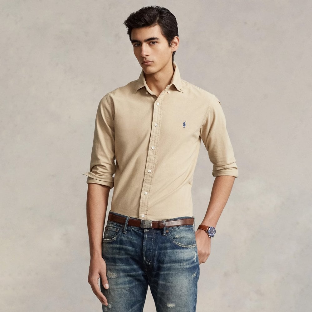 Men’s oxford shirt, from the new Ralph Lauren collection. It has a collar with buttons while the famous Ralph Lauren pony logo is embroidered on the chest. Made of soft, cotton fabric in custom fit.